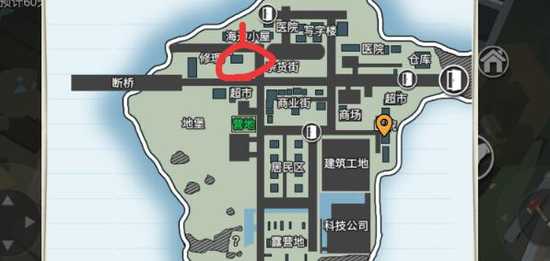 在“海邊小屋”的這個地方,中間被隔斷了,屬于另一類房區(qū),刷新寫字樓類的物資,同時紅圈地方一樣;