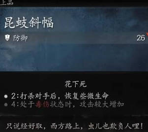 4、昆蚑斜幅的效果是26防御。