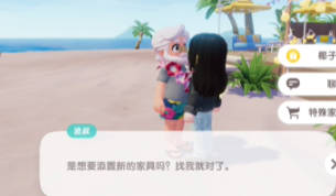 3、對(duì)話結(jié)束后玩家就會(huì)直接被傳送到沙灘的位置,完成與NPC萬(wàn)尼亞的對(duì)話后即可開(kāi)始收集椰子。
