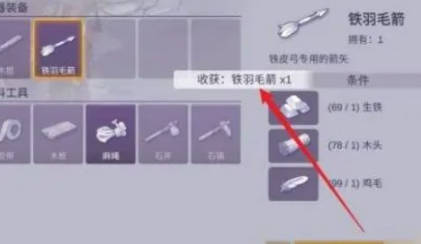 4、玩家只需找到制作鐵羽毛箭所需的材料即可。