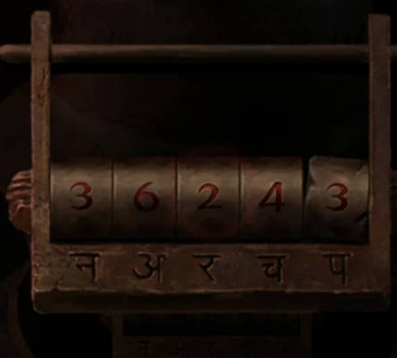 3、此時(shí)可以注意爐子上的線索和尺子上的鬼畫符是不對(duì)應(yīng)的,所以爐子的密碼是36243。