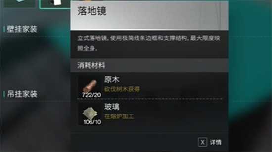 1、進(jìn)入自己的領(lǐng)地后,在家具欄目中,找到并選擇“落地鏡”進(jìn)行制作。