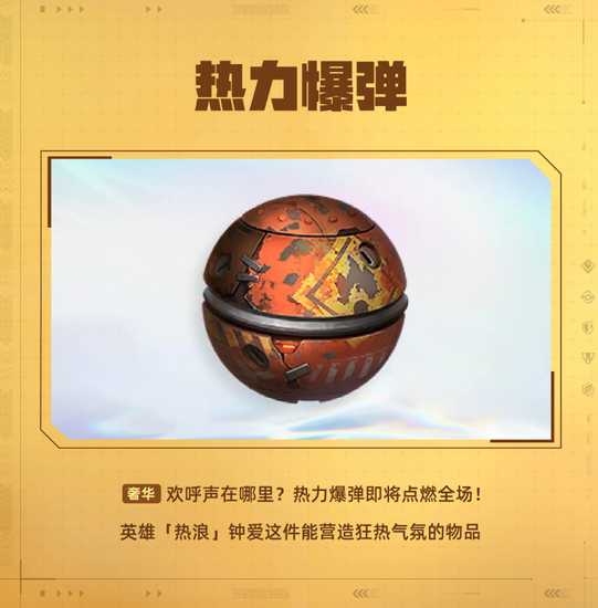他隨身攜帶著三枚小型榴彈,發(fā)射后觸地爆炸會造成大量傷害;配合噴射裝置高高躍起,可以從意外的角度突襲!終極技能狂襲爆彈,更會裝備三顆巨型炸彈對目標(biāo)區(qū)域狂轟濫炸,如熱浪一般,席卷一切!