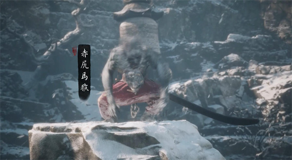 來到雪山地點(diǎn),與初始得披霜道得傳送點(diǎn)互動(dòng)過后,沿著山坡往上走,會(huì)遇到此章第一個(gè)boss,赤尻馬猴,不過這個(gè)赤尻馬猴在我們將其血條打至一半后便會(huì)立刻逃跑。