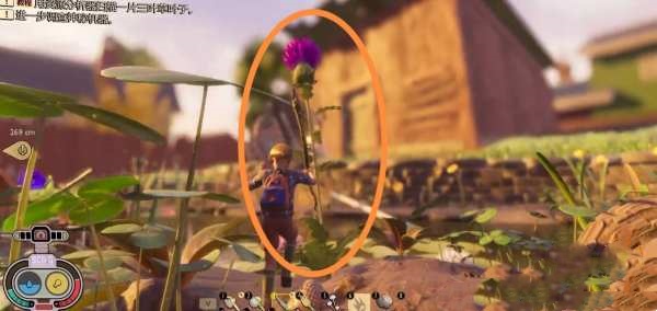 3、該植物的樣子如下圖所示,頂部是一朵紫色的話,葉子鋸狀的植物,用斧子砍會自動掉到背包