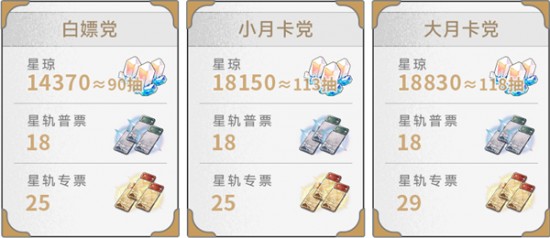 月卡玩家:大約獲得20,260星瓊,約127次抽卡。