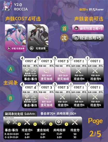 COST3聲骸:可以選擇雙湮滅屬性的聲骸,增強湮滅增傷,或根據(jù)副詞條的好壞選擇攻屬性或?qū)傩蕴嵘?/p>