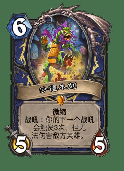 爐石傳說新擴(kuò)展包威茲班的工坊快上線了,威茲班的工坊帶來了新的機(jī)制,新增了一些卡牌,比如沙德木刻,那么爐石傳說沙德木刻怎么樣?下面就給大家?guī)頎t石傳說沙德木刻卡牌圖鑒。