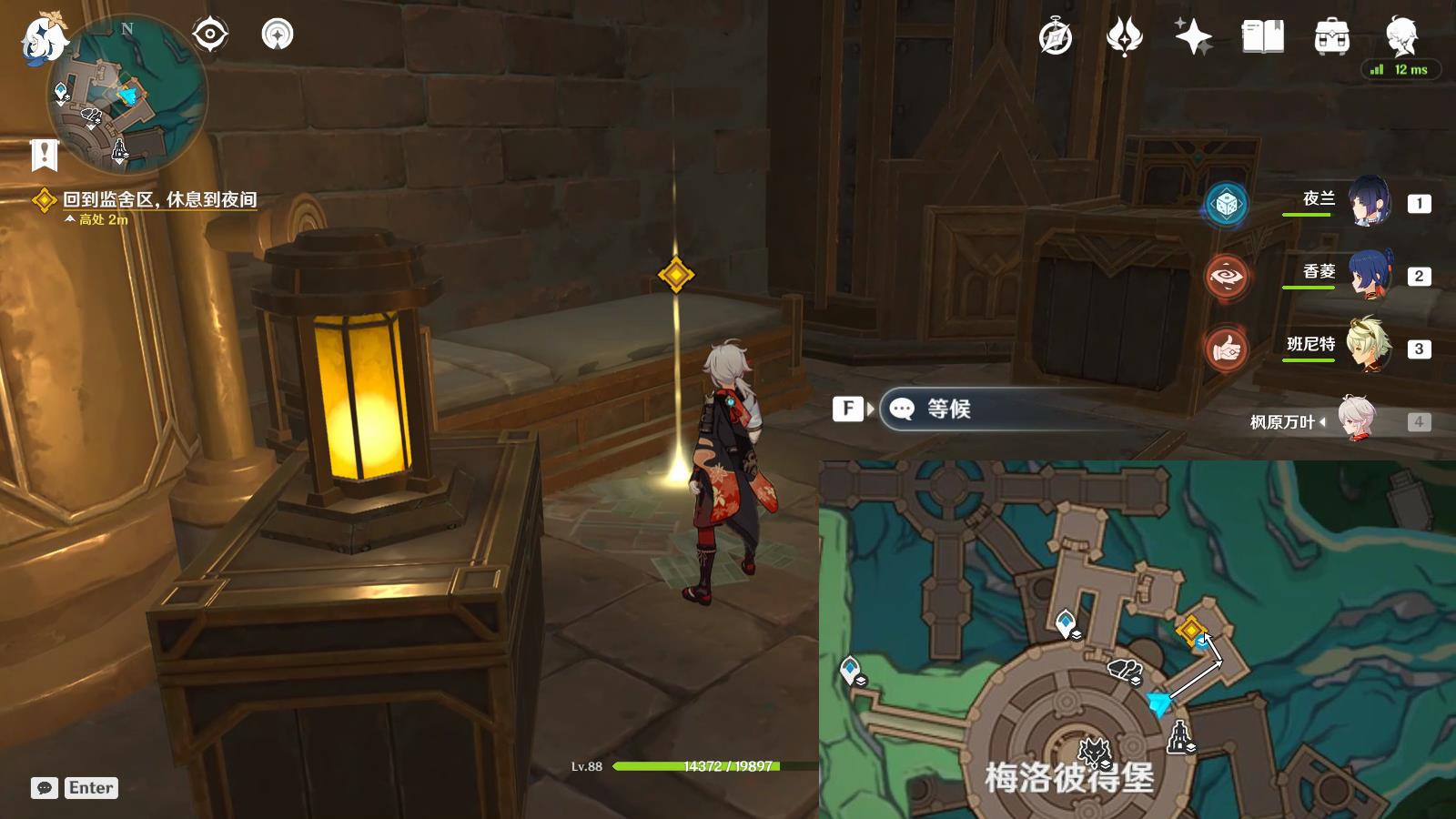 前往監(jiān)舍區(qū)等候,與派蒙對話