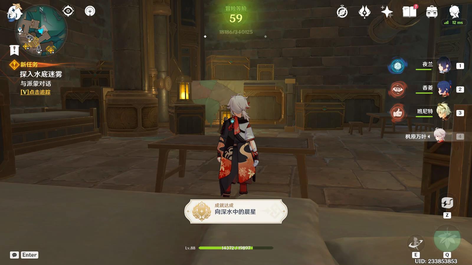 繼續(xù)與派蒙對話結(jié)束,獲得成就「向深水中的晨星」