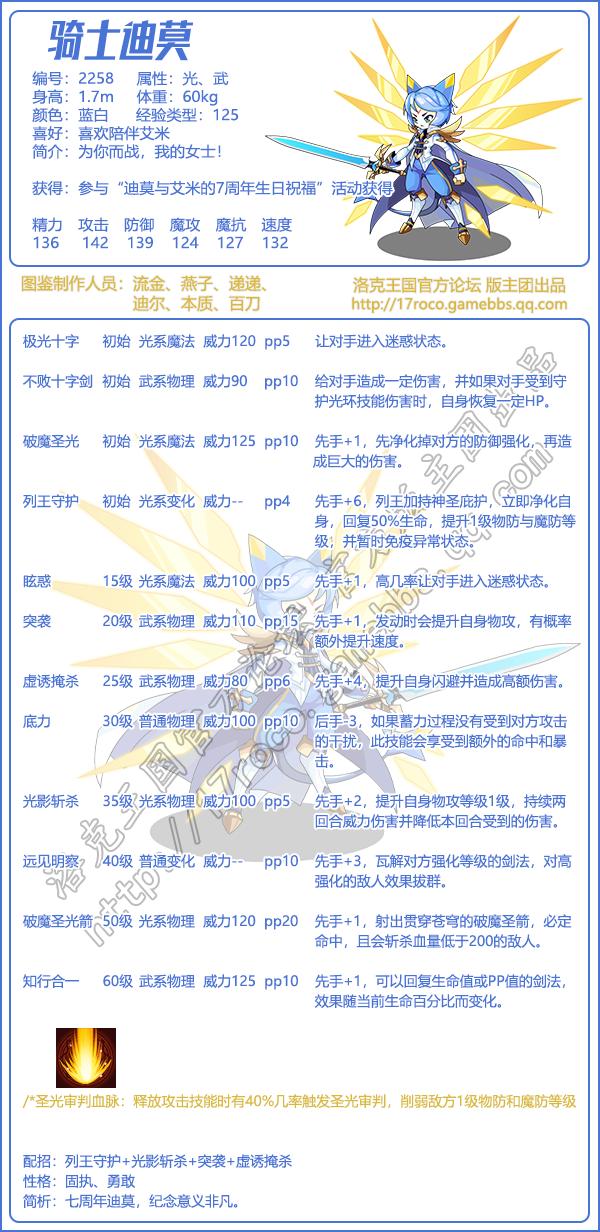 騎士迪莫,騰訊游戲《洛克王國》中的寵物,迪莫的七周年限定皮膚。簡介:為你而戰(zhàn),我的女士。