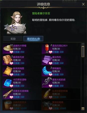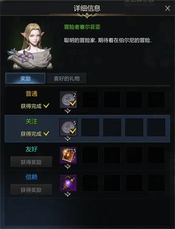 冒險者塞爾菲亞好感度獎勵: