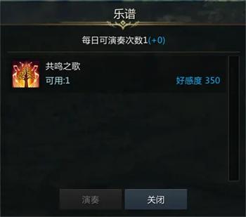 樂譜喜好:共鳴之歌,好感度+350