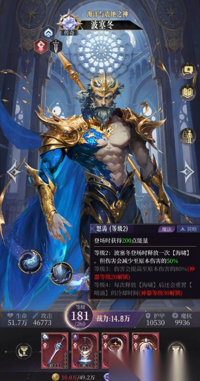 2、波塞冬:在目前最強的控制型角色,該有一定的聚怪能力,可以為隊友提供的良好的輸出環(huán)境。