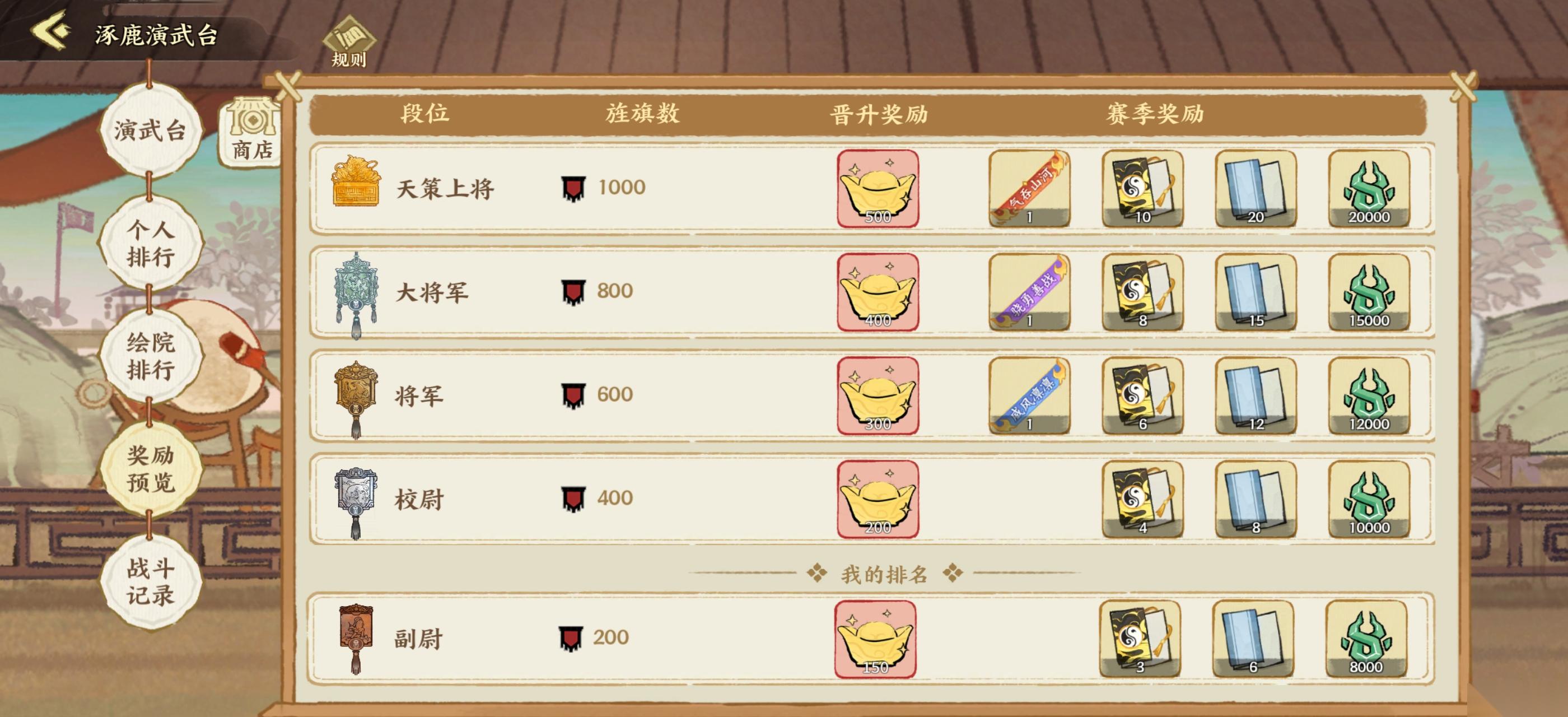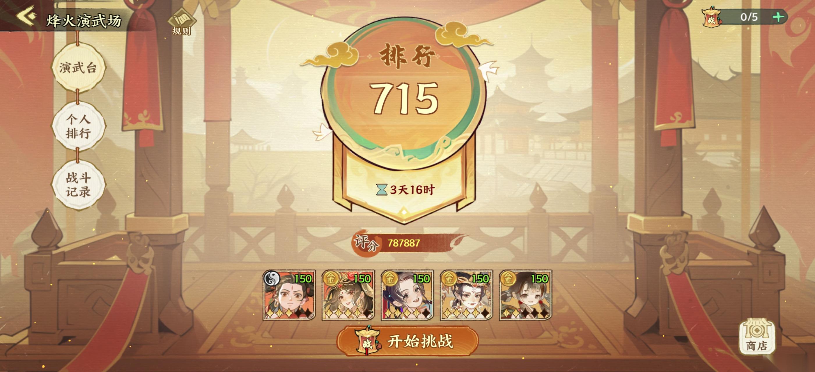 31級剛開這個競技場時買滿次數(shù),因為它每提升一個名次給10元寶,還有總排名獎勵。