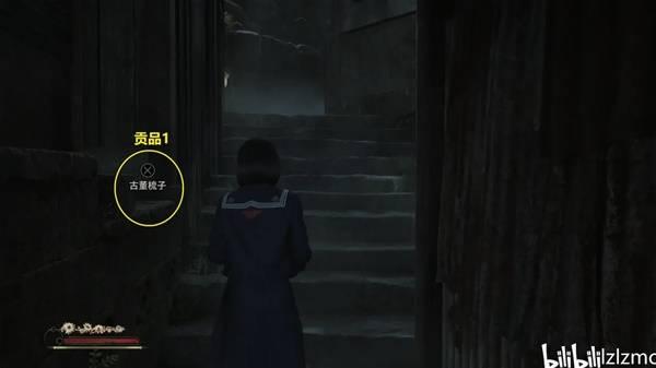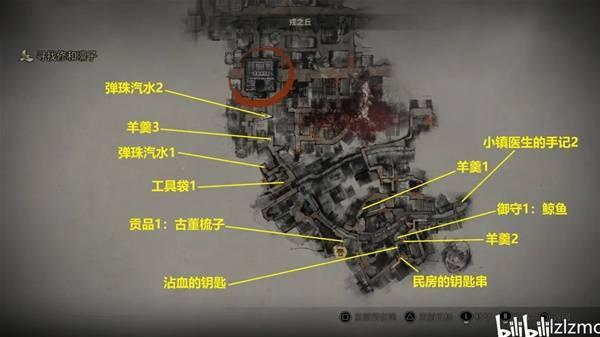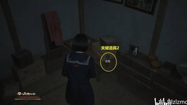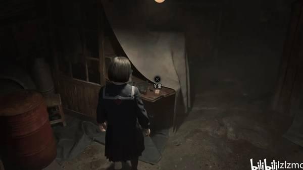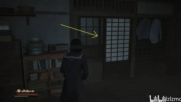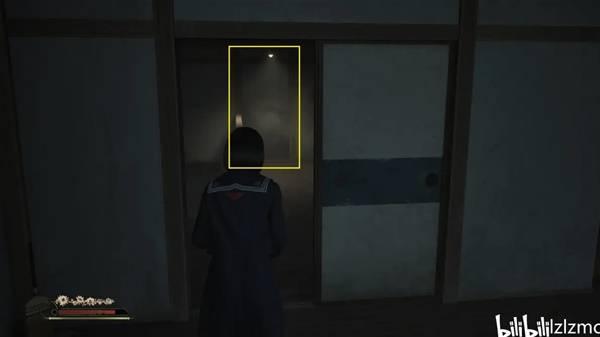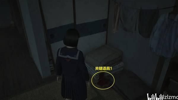 拿到了沾血的鑰匙后,如圖黃顏色方框內,樓梯旁原來上鎖的門開了,里面有個怪物,躲避后進去獲得關鍵道具2:民房的鑰匙串。