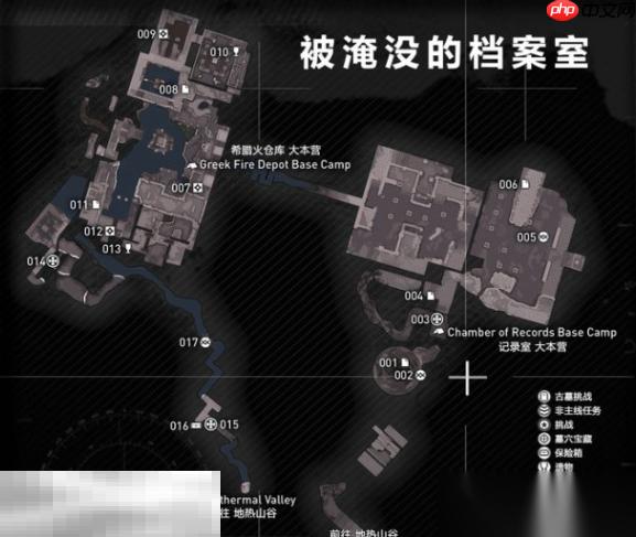古墓麗影崛起被淹沒(méi)的檔案室支線任務(wù)需重返地?zé)嵘焦任鞅眰?cè)山脊,使用希臘火罐三次破壞雕像基座,推動(dòng)倒塌的雕像搭建通路,并獲取無(wú)限潛水呼吸器,同時(shí)解鎖地?zé)嵘焦韧暾貓D。