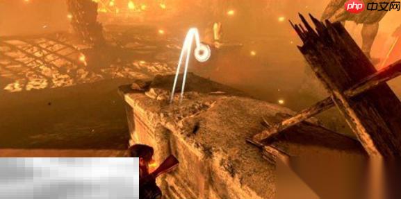 第二處爆破:游至對(duì)岸啟動(dòng)閘門(mén)釋放浮罐,途中障礙物需提前引爆清理航道;放出第二個(gè)罐子后,用套索箭勾住木樁調(diào)整其漂流方向,割斷繩索讓罐子順?biāo)蛑ё冢拷?a>射擊引爆。