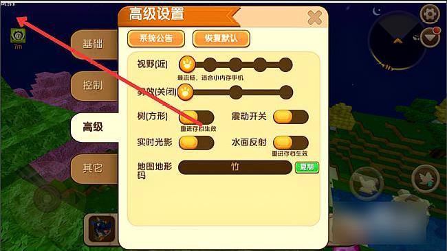 進(jìn)入到【高級(jí)設(shè)置】后,如果把視野調(diào)低,霧效調(diào)低或關(guān)閉,把其他的特效功都關(guān)掉,幀數(shù)會(huì)上升,如果進(jìn)行相反操作,幀數(shù)會(huì)下降。這里選擇第一種操作。