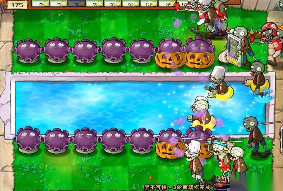 后續(xù)還有多余金幣,可以在補(bǔ)上幾個(gè)香蒲用來(lái)增加輸出。也可以在最后一列上種滿寒冰射手,用來(lái)減速僵尸。因?yàn)檫@一關(guān)的有很多移速很快的僵尸,比如橄欖球僵尸和海豚僵尸等。寒冰射手陽(yáng)光耗費(fèi)較少,且減速效率極高。憂郁噴菇前方的草坪也不要浪費(fèi),可以在其前方種上地刺。這個(gè)植物不會(huì)被僵尸觸碰,并且在被南瓜頭阻擋的時(shí)候,可以一直進(jìn)行穩(wěn)定的輸出。