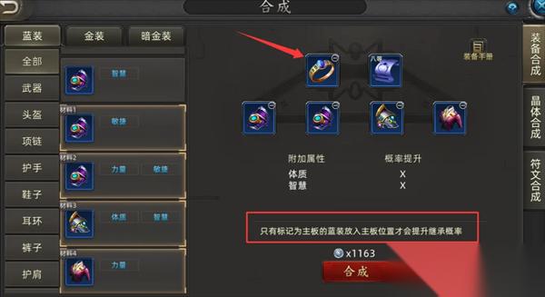 但是需要注意:主板裝備左上角一定要帶材料標(biāo)識(shí),這樣的裝備放在主板上面,才有概率提升。