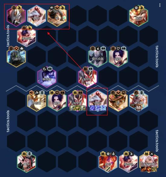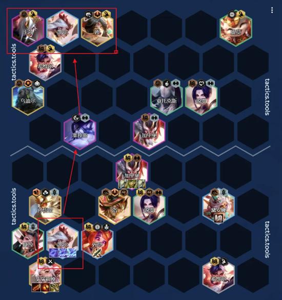 建議:如果有【精致古董】→圣杯多的情況下,可以考慮這個站位;主坦帶石像鬼單頂前排的陣容,不適合這個站位。