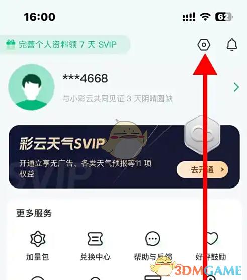 1、打開彩云天氣軟件,進(jìn)入我的頁面,點(diǎn)擊上面的圖標(biāo),