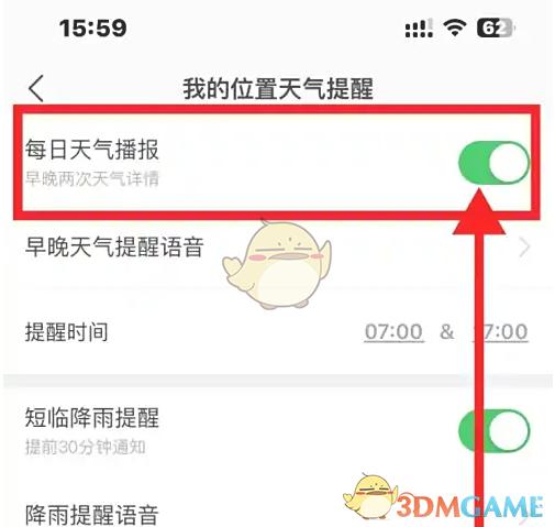 3、進(jìn)入頁面,點(diǎn)擊每日天氣播報(bào),后側(cè)按鈕關(guān)閉即可。