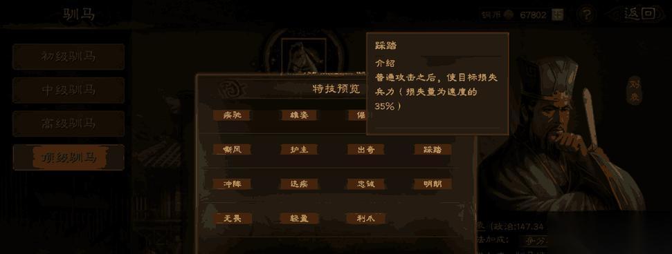 三國志戰(zhàn)略版是一款備受玩家喜愛的策略游戲,在游戲中,馬匹是非常重要的資源,它們可以為玩家提供戰(zhàn)斗的移動(dòng)能力和強(qiáng)大的攻擊力。然而,如果玩家無法正確馴養(yǎng)馬匹,將會(huì)對(duì)游戲進(jìn)程造成很大的影響。本篇文章將為大家詳細(xì)介紹三國志戰(zhàn)略版馴馬技能的作用和提升方法,希望能夠幫助玩家更好地掌控游戲。
