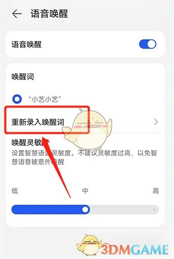 3、進(jìn)入到語(yǔ)音喚醒頁(yè)面點(diǎn)擊重新錄入喚醒詞即可更換語(yǔ)音主人。