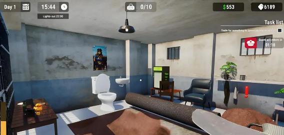 越獄模擬器以監(jiān)獄逃脫為核心,玩家需在14天內(nèi)策劃越獄,游戲采用3D場景和晝夜系統(tǒng),白天執(zhí)行日常任務(wù)降低警戒值,夜晚秘密行動(dòng)。主要流程包括:??