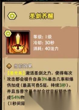 圣劍蘇醒:看描述就是一個普攻流的起手buff技能。