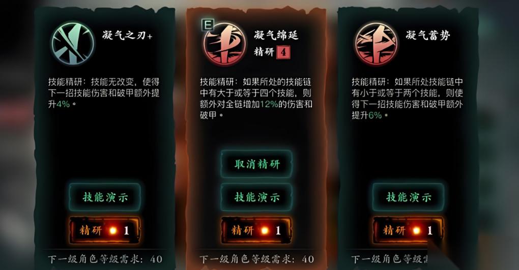 技能鏈構(gòu)建需平衡破甲與輸出,上鏈推薦凝氣之刃、幻滅等高破甲技能,下鏈以夜色、瞬空殺等續(xù)航技能為主。鬼步的無敵幀是絕影生存關(guān)鍵,需合理穿插在技能間隙。心法羈絆中光與暗(黑暗無情+白衣留情)可提供100%雙向增傷,但需承受同等傷害增幅,適合高風(fēng)險高回報打法。怪面科技(魔堡故人+蛇眼+鐵誕)能減少套裝需求件數(shù),提升裝備搭配靈活性。