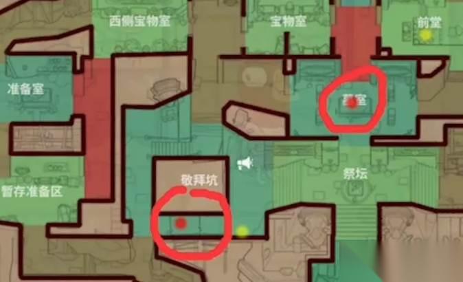 固定任務(wù)的位置分別在暫存準(zhǔn)備區(qū)右側(cè)通道、敬拜坑外側(cè)以及墓室中間。完成任務(wù)后可以通過地圖啟動(dòng)機(jī)關(guān)來開啟對(duì)應(yīng)的事件。