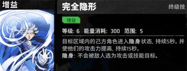 隱形女的終極技能完全隱形是其最具戰(zhàn)略意義的能力。釋放后,技能范圍內(nèi)的所有隊友將進(jìn)入持續(xù)5秒的隱身狀態(tài),期間無法被敵方技能選中,實現(xiàn)完美規(guī)避。無論是面對群體控制還是集火打擊,這一技能都能有效保護(hù)核心輸出單位。隱身結(jié)束后,隊友還將獲得長達(dá)15秒的攻擊力提升效果。這一機(jī)制讓隱形女在逆境反打、關(guān)鍵技能規(guī)避等場景中發(fā)揮決定性作用,是漫威秘法狂潮中少有的兼具防御與增益的復(fù)合型大招。