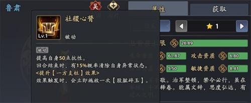 魯肅的基礎(chǔ)被動技能賦予他較強(qiáng)的異常狀態(tài)抗性,當(dāng)敵方施加的負(fù)面效果較多時,該能力能有效提升其戰(zhàn)場存活率。每當(dāng)回合結(jié)束時,魯肅可自動清除自身部分負(fù)面狀態(tài),這一凈化機(jī)制讓他在長期作戰(zhàn)中始終保持穩(wěn)定狀態(tài)。作為輔助型武將,這種自我維持能力極大減少了隊(duì)伍對其額外保護(hù)的需求,使他在前排或中排都能發(fā)揮持續(xù)作用。這一特性也讓魯肅在對抗依賴異常累積的陣容時具備天然優(yōu)勢。