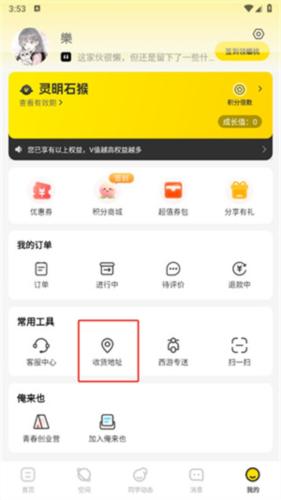 2、然后在我的頁面中我們需要點擊【收貨地址】按鈕;