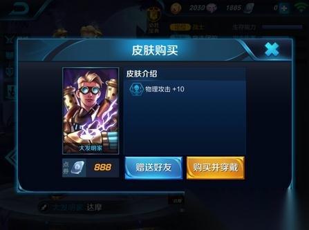 選擇好心儀的皮膚之后,點擊進入皮膚購買界面,會出現(xiàn)贈送好友和購買并穿戴兩個選項。如果你是想贈送好友皮膚,那么直接點擊贈送給好友。