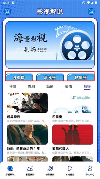 悟空劇場app怎么找高分電影,進入軟件后可以在這里看到有超多的影視作品選擇,并根據(jù)類型進行分類方便查看,在這里可以看到有多重熱門排序選擇,如果要找尋高分榜可以高分榜影視作品。
