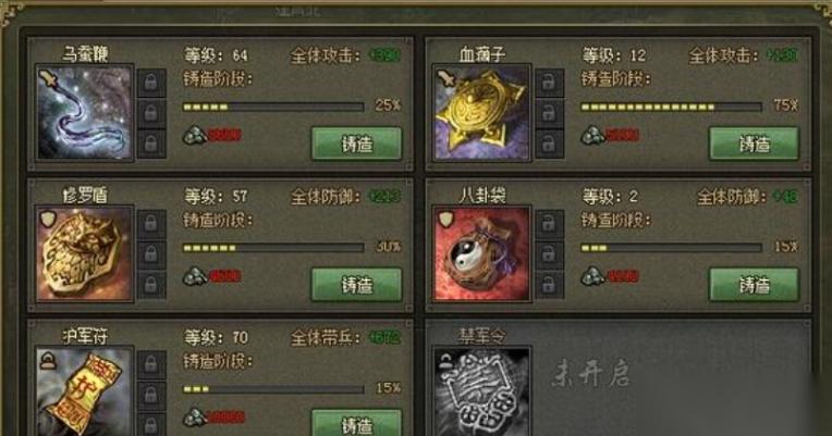 兵器優(yōu)先升級攻擊類裝備能顯著提升前期推圖效率。兵器系統(tǒng)作為戰(zhàn)力核心模塊,攻擊屬性的強化直接影響輸出效率,尤其在資源有限階段,集中升級弓箭、投石機等遠(yuǎn)程兵器可快速突破關(guān)卡限制。每級攻擊型兵器升級帶來攻擊+5、防御+3、兵數(shù)+8的增益,這種線性增長在前期副本中能形成碾壓優(yōu)勢。鑌鐵作為核心資源需優(yōu)先分配給攻擊兵器,待基礎(chǔ)輸出能力成型后再考慮防御補足。