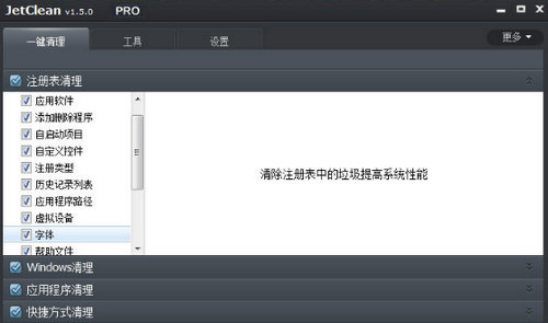 jetclean免費下載是一個類似于CCleaner的系統(tǒng)清理軟件,它提供了諸如注冊表清理、磁盤文件清理、瀏覽器臨時文件及其它程序清理、快捷方式清理等與CCleaner一樣的功能。不同的是它增加了一項內存清理功能,此項功能可以優(yōu)化Windows的內存使用情況,以釋放更多內存。