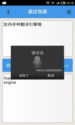 不想手動錄入,又懶得粘貼,點擊語音按鈕,即可自動將你說的話轉(zhuǎn)成文本錄入到輸入框內(nèi),在實用不過的功能了,最后點翻譯按鈕即可在羨慕看到結(jié)果。