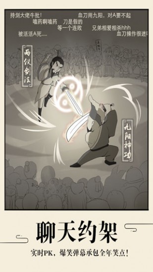 黑白漫畫(huà),幽默江湖:采用黑白漫畫(huà)風(fēng)格,簡(jiǎn)約而不失精致,為玩家呈現(xiàn)一個(gè)既輕松幽默又暗藏殺機(jī)的江湖世界,每一幀畫(huà)面都充滿(mǎn)了故事感。