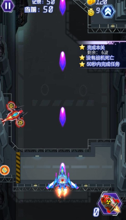 升級戰(zhàn)機(jī):通過擊敗敵人和完成任務(wù)獲得獎勵,用這些獎勵來升級戰(zhàn)機(jī)的性能,提高戰(zhàn)斗力。