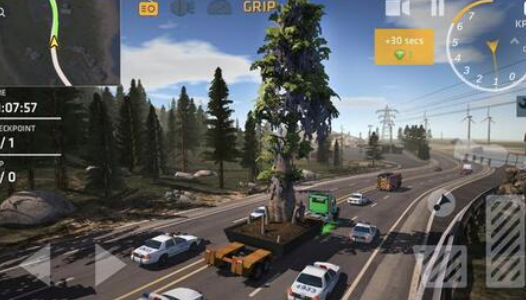 1.駕駛與控制:玩家通過屏幕上的虛擬按鍵或方向盤控制器來駕駛卡車,包括加速、剎車、轉向等操作。