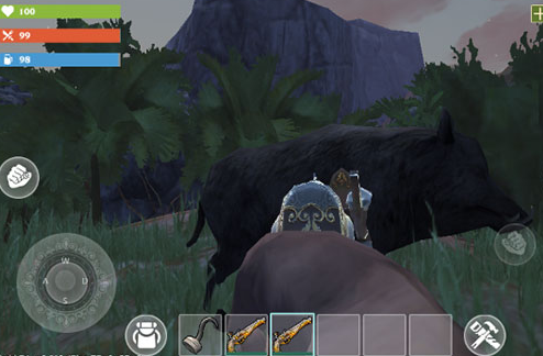 3、為你的生存而戰(zhàn),創(chuàng)造出可以攻擊野獸的武器,來(lái)保護(hù)自己,提升自己的安全。