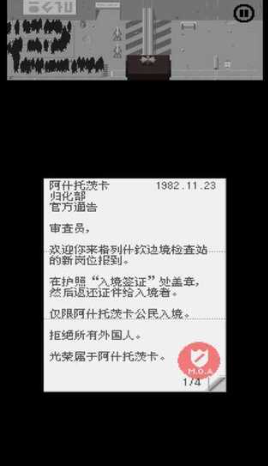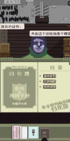請出示證件偽人版是一款由Lucas Pope開發(fā)的獨(dú)立模擬游戲,請出示證件偽人版背景設(shè)定在一個(gè)虛構(gòu)的極權(quán)主義國家Arstotzka,玩家扮演一名邊境檢查站的移民檢查員。玩家的任務(wù)是對入境人員的文件進(jìn)行審查,決定是否允許他們進(jìn)入國家。這包括檢查證件的有效性、核實(shí)個(gè)人信息、查找偽造或不一致的信息。
