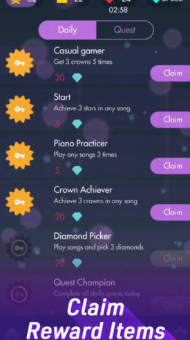 點擊方塊:玩家通過手指點擊屏幕上的黑色方塊來完成音符匹配,同時需要避開白色方塊,否則游戲?qū)⒅苯咏Y(jié)束。