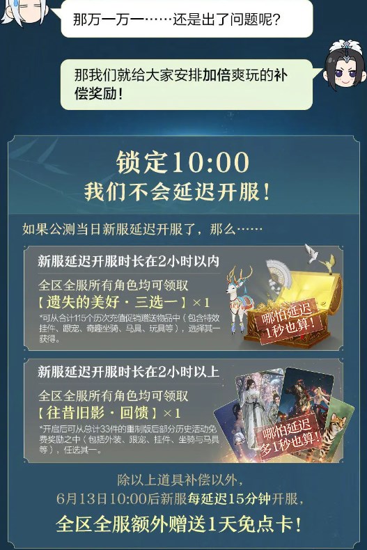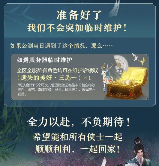 全方位無死角當(dāng)天任何情況俠士們都有加倍補(bǔ)償拿,力求開服一定穩(wěn)!