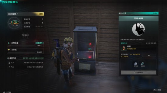 默認:異常能量大于30時會自動進入工作狀態(tài),激活狀態(tài)下造物型異常物會生產(chǎn)專屬資源。